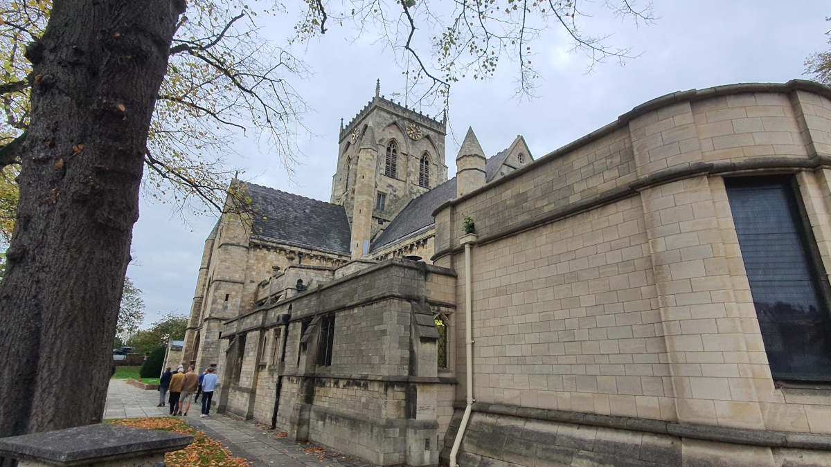 For those who have yet to ring at the Minster access to the ringing chamber, via and outside door, is an initial climb of a narrow circular 30 step staircase followed by a walk along an even narrower open gallery and a final further 40 steps to the ringing chamber. It is said that the "larger than life" master - in all aspects - Rupert Richardson - never rang at Grimsby for that reason. Not true! - he rang a peal there. However one band member did comment that no-one had told him of the need to diet in the run-up to the competition. Having enjoyed himself so much last year- David Phillipson, needed but little persuasion to return to judge this year's event. By early afternoon the first concern was raised as at all striking competitions "we are worried we haven't got enough food" - there was plenty!! Then it transpired that the place for David to judge the competition from was "out of bounds" - the church being locked at 1430! David took it upon himself and quickly resolved the situation by visiting St James hotel opposite the Minster and securing a suite at no cost overlooking the Minster to judge the competition. I am informed that the delivery of refreshments during the break by the ringing master and the ringing deputy ringing master of Eastern Branch failed to influence the result!!