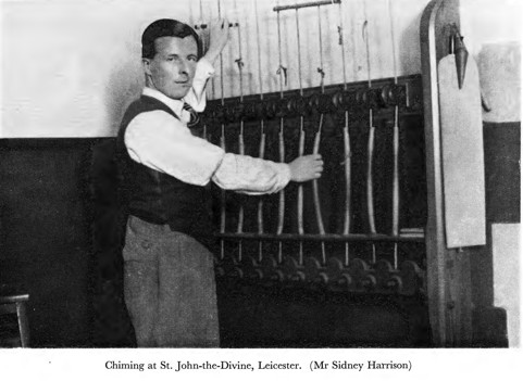 I only heard one Ellacombe expertly used and this was at St John-the-Divine, Leicester, shown on the accompanying photograph. In my youth Sidney Harrison was Tower Captain at St Johns and he was a master on the Ellacombe, chiming a variety of tunes, both hymns and secular, all without music and completely by ear, never any mistakes. Occasionally after Wednesday evening practice he would give us a short recital, always most enjoyable and entertaining. The Easter hymn "Christ Our Lord is risen today", I particularly recall, Sidney's arms and elbows working away at the clavier, St Johns bells singing out above, melody with accompanying chords. Those days have gone as St Johns is now a block of flats and its bells transferred to Peterborough Cathedral where a few years ago I had the pleasure of once more ringing them. As for Rev Ellacombe, I quote a few lines from his 1849 publication, - "Advice for Ringers." He says, "Eyes Open, Eyes Wide, Feet Steady, Tongue Tied" Good advice fellow ringers? I will leave that to your individual opinions