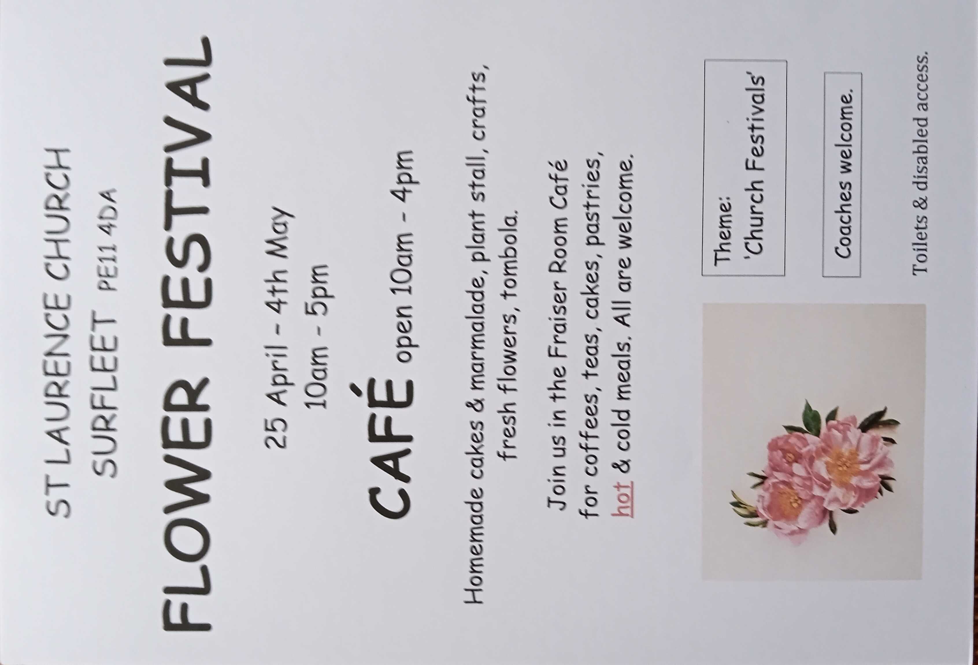 Details of the planned itinerary are here. View a map of the planned itinerary here.There will be a Flower Festival at St Laurence, Surfleet from 25th April to 4th May.