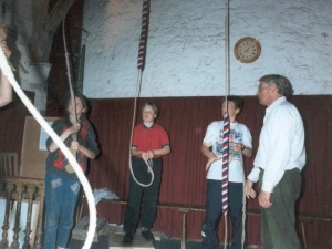 Leading from experiences gained at Bishops Waltham, Ted was instrumental in the rehanging the six bells and subsequent augmentation to eight at Caistor, the new steel bell frame being built in his workshop, and the rehanging and augmentation to six at Grasby. A difficult four that had not been regularly rung before his arrival were rehung on new fittings, augmented first to five and then to six using second hand bells and an additional frame above the existing timber bell frame.